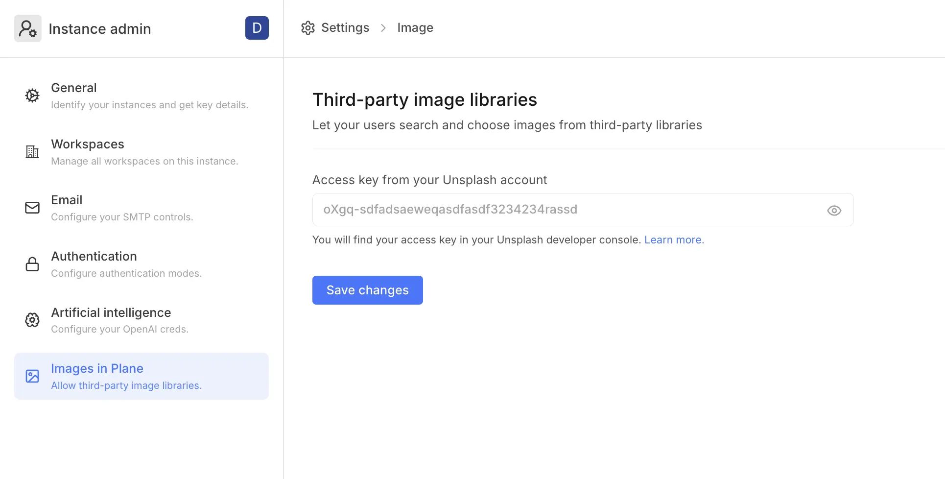 You can use your own third-party libraries to update images in project settings. Configure your Unsplash key here. When we add more image libraries, they will show up here.